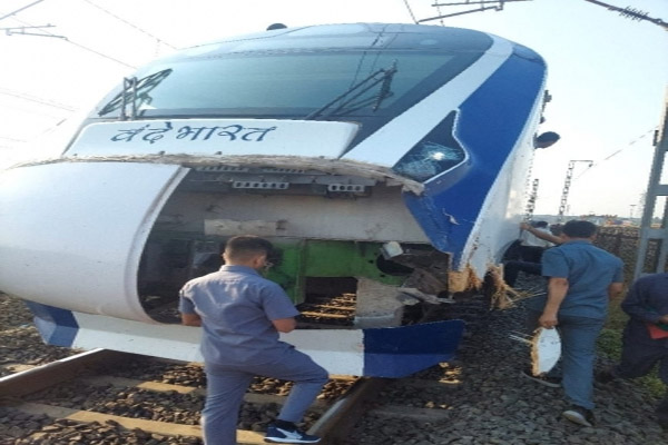 रेलवे से मिली जानकारी के मुताबिक यह घटना सुबह 8.17 पर हुई है। घटना के बाद ट्रेन को लगभग आधे घंटे तक रोके रखा गया तकनीकी जांच के बाद ट्रेन को आगे के लिए रवाना किया गया। रेलवे के अधिकारियों ने बताया है कि ट्रेन को कोई नुकसान नहीं हुआ है सिवाय फ्रंट कोच यानी ड्राइवर कोच के नोज कॉन कवर पर नुकसान हुआ है। हादसे की जानकारी होते ही रेलवे के अधिकारी मौके पर रवाना हो गए थे और उन्होंने सभी निरीक्षण और परीक्षण के बाद ट्रेन को रवाना किया है।