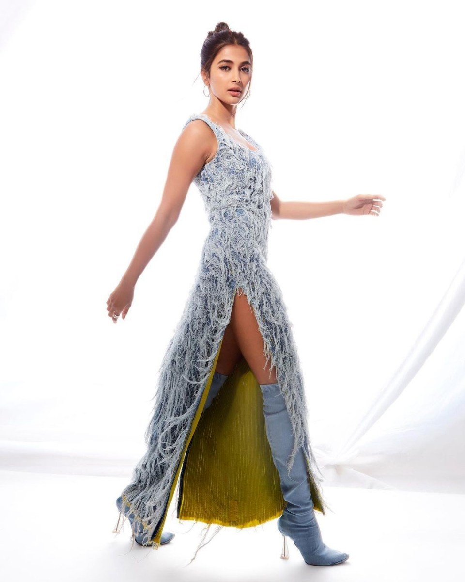 बॉलीवुड एक्ट्रेस पूजा हेगड़े इन दिनों अपनी फिल्म किसी का भाई किसी की जान के प्रमोशन में बिजी हैं। एक्ट्रेस अपनी इस फिल्म के प्रमोशन से दौरान बेहद ही स्टाइलिश आउटफिट पहन रही हैं जहां उनका हॉट लुक देखकर फैंस उनकी तारीफों के पुल बांधते नहीं थक रहे हैं। हाल ही में एक्ट्रेस ने अपनी रिवीलिंग आउटफिट की तस्वीरें इंस्टाग्राम पर पोस्ट की हैं जिसमें वो बेहद ही ग्लैमरस दिखाई दे रही हैं। एक्ट्रेस पूजा हेगड़े साउथ इंडस्ट्री के साथ-साथ बॉलीवुड में भी इन दिनों घमाल मचा रही हैं। उन्होंने अपनी एक्टिंग के दम पर बॉलीवुड इंडस्ट्री में लोगों के बीच अपनी खास पहचान बना ली है। हाल ही में एक्ट्रेस पूजा हेगड़े अपनी अपकमिंग फिल्म किसी का भाई किसी की जान को लेकर सोशल मीडिया पर काफी लाइमलाइट बटौर रही हैं। बता दें कि इन दिनों पूजा हेगड़े अपनी आने वाली फिल्म के प्रमोशन में काफी व्यस्थ हैं और सलमान खान के साथ एक्ट्रेस की ये पहली फिल्म है। पूजा हेगड़े का प्रमोशन के दौरान बेहद ही स्टाइलिश आउटफिट में किलर अवतार देखने को मिल रहा है जिसे फैंस खूब पसंद कर रहे हैं। एक्ट्रेस का हर लुक फैंस के बीच ट्रेंड करता है। वो कुछ भी पहने लोग उन्हें हमेशा फॉलो करते हैं। इन तस्वीरों में पूजा हेगड़े ने ग्रे कलर का शिमरी कुर्ती पहना हुआ है जिसमें वो काफी सिजलिंग और हॉट नजर आ रही हैं। पूजा हेगड़े सोशल मीडिया पर काफी एक्टिव रहती हैं। इंस्टाग्राम पर उनके चाहने वाले उनकी हर एक तस्वीरों पर लाइक्स और कॉमेंट्स के जरिए अपनी प्रतिक्रियाएं देते हैं।