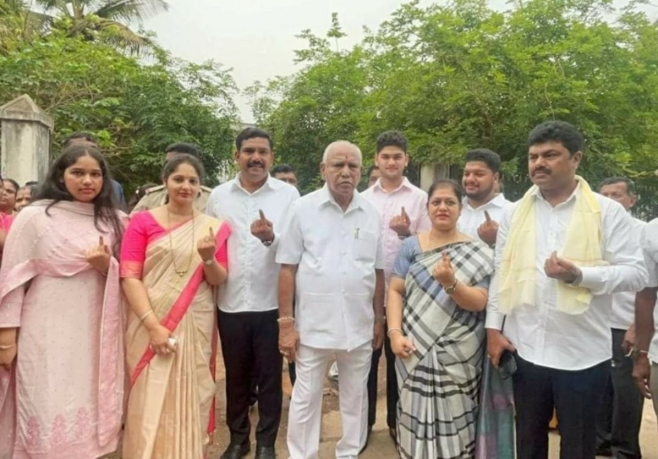 येदियुरप्पा के बेटे बीवाई विजयेंद्र शिकारीपुरा से भाजपा के उम्मीदवार के रूप में चुनाव लड़ रहे हैं। वह अपने पिता के साथ मतदान केंद्र पहुंचे थे।