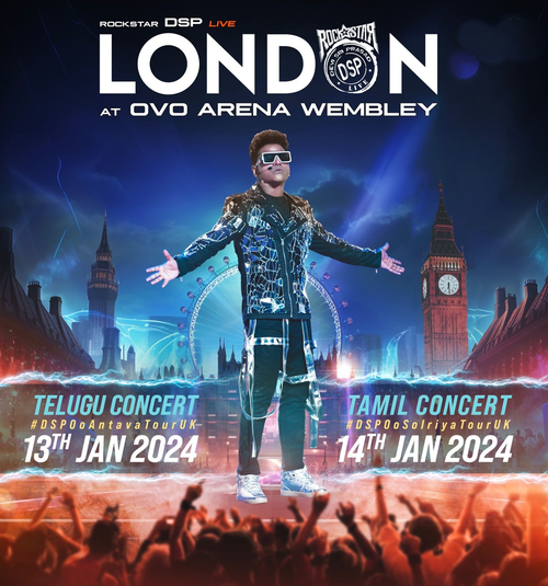 मलेशिया में अपने अविस्मरणीय ‘ऊ सोलरिया’ और अमेरिका में ‘ऊ अंतावा’ के बाद रॉकस्टार डीएसपी के नाम से मशहूर देवी श्री प्रसाद दो दिनों के लिए लंदन में स्टेज की शोभा बढ़ाएंगे।