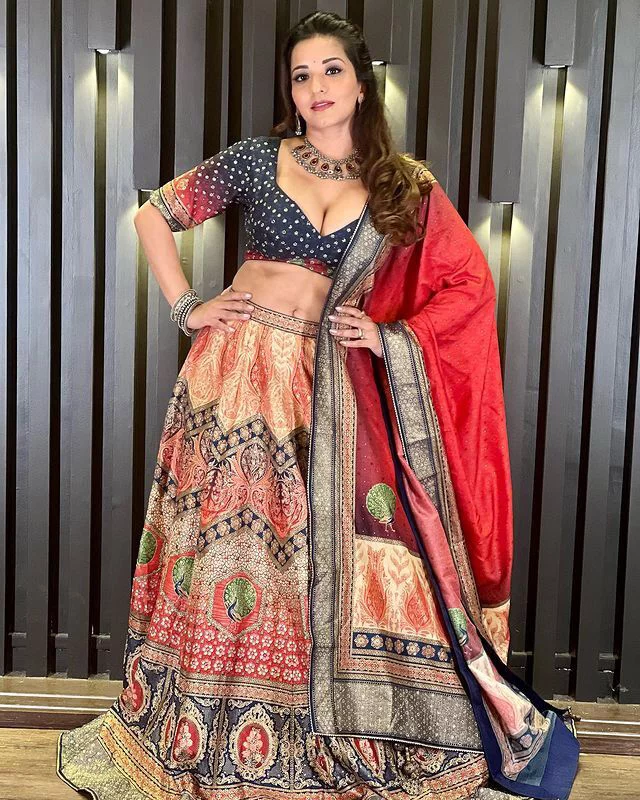 भोजपुरी इंडस्ट्री की हॉट क्वीन मोनालिसा ने हालिया फोटोशूट के दौरान की लेटेस्ट तस्वीरें इंस्टाग्राम पर पोस्ट की हैं। इन तस्वीरों में उनका स्टाइलिश अंदाज देखकर फैंस एक बार फिर से आहें भरने लगे हैं। मोनालिसा ने खूबसूरत लहंगा पहना हुआ है, जिसमें वो काफी स्टनिंग और गॉर्जियस नजर आ रही हैं। सोशल मीडिया पर अपनी हॉटनेस और बोल्ड फिगर के कारण चर्चाओं में रहने वाली एक्ट्रेस मोनालिसा किसी भी पहचान की मोहताज नहीं हैं। उनका हर एक अंदाज इंस्टाग्राम अकाउंट पर शेयर होते ही फैंस के बीच तेजी से वायरल होने लगता है। हाल ही में एक्ट्रेस मोनालिसा ने अपने लेटेस्ट फोटोशूट की तस्वीरें इंस्टाग्राम पर शेयर कर लोगों का सारा अटेंशन अपनी ओर खींच लिया है। मोनालिसा ने अपने लेटेस्ट तस्वीरों में ब्लू और रेड कलर के प्रिंट में लहंगा-चोली पहनी हुई है। एक्ट्रेस अपने इस लुक में बेहद ही शानदार लग रही हैं। बता दें कि एक्ट्रेस का लुक फैंस के बीच काफी ट्रेंड करता है। हालांकि उनकी हर एक अदाओं पर फैंस मर मिटते हैं। मोनालिसा ने अपनी इन तस्वीरों में किलर एक्सप्रेशंस देते हुए काफी खूबसूरत तस्वीरें क्लिक करवाई हैं। गले में नेकलेस, खुले बाल, कानों में इयररिंग्स पहनकर एक्ट्रेस मोनालिसा ने अपने आउटलुक को कंप्लीट किया है। मोनालिसा सोशल मीडिया पर काफी सक्रिय हैं। इंस्टाग्राम पर उनकी फैन फॉलोइंग लिस्ट काफी लंबी है।