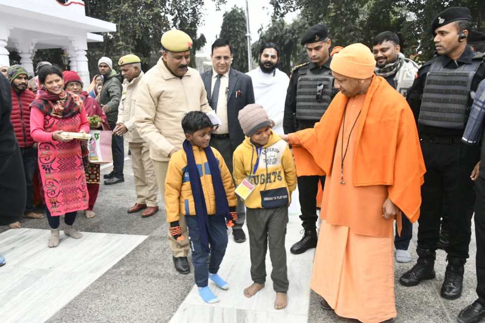 गोरखपुर, 1 जनवरी। नववर्ष का पहला दिन, गोरखनाथ मंदिर दर्शन-पूजन करने गए कुछ बच्चों के लिए यादगार बन गया। नए साल की पहली सुबह न केवल उन्हें मुख्यमंत्री योगी आदित्यनाथ से मिलाने वाली रही, बल्कि उन्हें सीएम को हैप्पी न्यू ईयर बोलने और प्रत्युत्तर में ढेर सारा प्यार-दुलार दिलाने वाली भी रही।