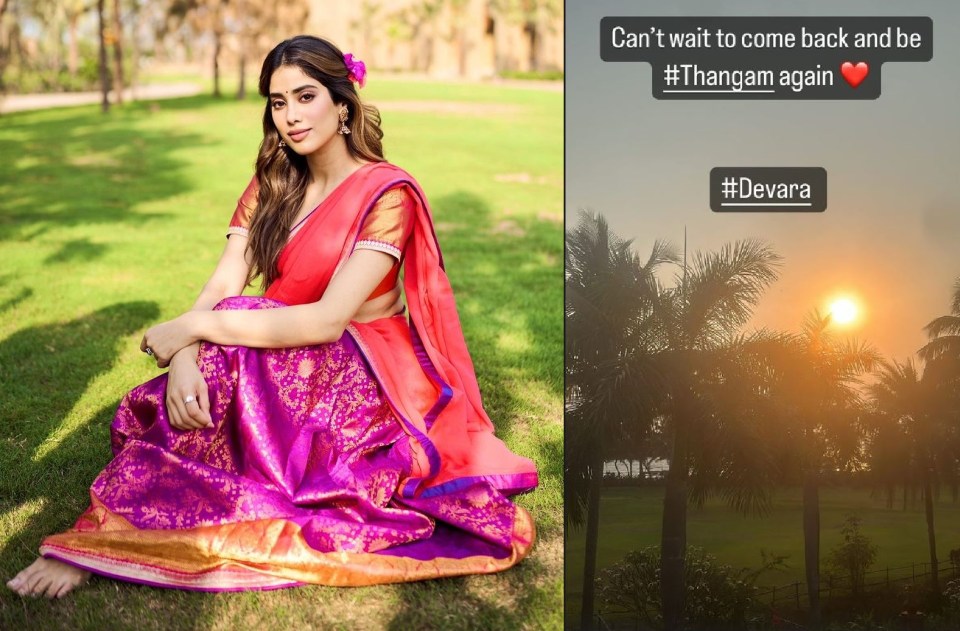 जान्हवी ने अपनी इंस्टाग्राम स्टोरी पर सूर्यास्त की एक तस्वीर शेयर की और लिखा, “वापस आने और फिर से थंगम बनने का इंतजार नहीं कर सकती।”