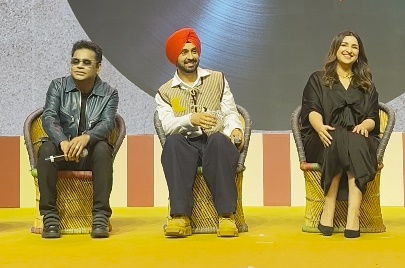 दिलजीत के साथ निर्देशक इम्तियाज अली, ऑस्कर और ग्रैमी विजेता संगीतकार ए.आर. रहमान और एक्ट्रेस परिणीति चोपड़ा भी थीं।