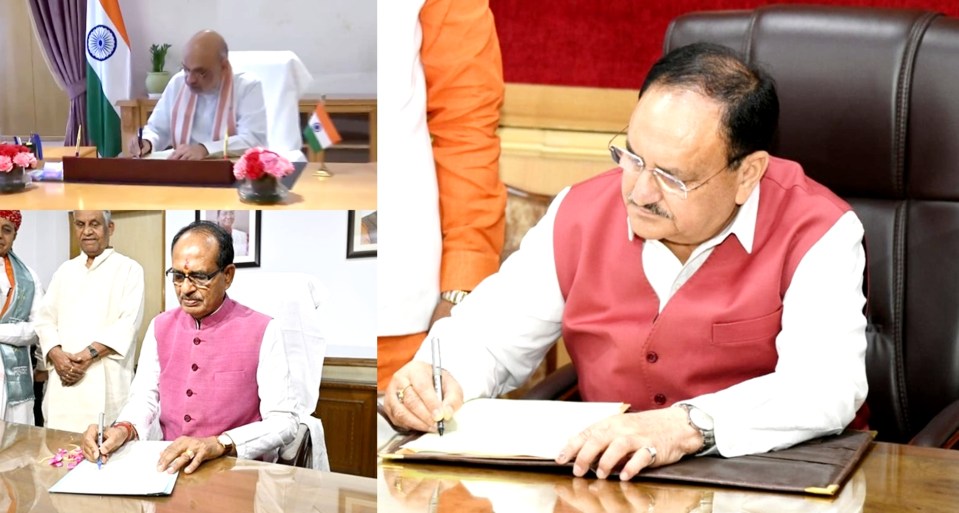 नई दिल्ली, 11 जून । अमित शाह ने नॉर्थ ब्लॉक पहुंच कर गृह मंत्री का कार्यभार संभाल लिया है। इसके साथ ही भाजपा राष्ट्रीय अध्यक्ष जेपी नड्डा ने निर्माण भवन स्थित स्वास्थ्य मंत्रालय पहुंच कर स्वास्थ्य मंत्री का कार्यभार संभाल लिया। वहीं शिवराज सिंह चौहान ने भी कृषि भवन पहुंचकर कृषि एवं किसान कल्याण मंत्रालय का कार्यभार संभाल लिया। केंद्रीय मंत्री अमित शाह ने मंगलवार को अपना कार्यभार संभालने से पहले नेशनल पुलिस मेमोरियल जाकर अपने कर्तव्यों को निभाने के दौरान जान गंवाने वाले पुलिसकर्मियों को नमन किया। इसके बाद अमित शाह ने नॉर्थ ब्लॉक स्थित गृह मंत्रालय पहुंच कर लगातार दूसरी बार गृह मंत्री का कार्यभार संभाल लिया। इस दौरान उनके साथ केंद्रीय गृह राज्य मंत्री बनाए गए नित्यानंद राय और बंदी संजय कुमार भी मौजूद रहे। अमित शाह आज ही सहकारिता मंत्री का कार्यभार भी संभालेंगे। वहीं भाजपा राष्ट्रीय अध्यक्ष जेपी नड्डा ने सुबह पार्टी मुख्यालय पहुंच कर राष्ट्रीय संगठन महासचिव बीएल संतोष और राष्ट्रीय महासचिव विनोद तावड़े सहित पार्टी के अन्य नेताओं से मुलाकात की। इसके बाद उन्होंने निर्माण भवन स्थित स्वास्थ्य मंत्रालय पहुंच कर स्वास्थ्य मंत्री का कार्यभार संभाल लिया। कार्यभार संभालने के दौरान जेपी नड्डा के साथ स्वास्थ्य और परिवार कल्याण राज्य मंत्री बनाए गए जाधव प्रतापराव गणपतराव और अनुप्रिया पटेल भी मौजूद रहे। जेपी नड्डा ने रसायन एवं उर्वरक मंत्री के तौर पर भी अपना कार्यभार संभाल लिया है। मध्य प्रदेश के पूर्व मुख्यमंत्री शिवराज सिंह चौहान ने भी कृषि भवन पहुंचकर कृषि एवं किसान कल्याण मंत्रालय का कार्यभार संभाल लिया। चौहान को कृषि एवं किसान कल्याण के साथ ही ग्रामीण विकास मंत्रालय जैसे महत्वपूर्ण विभाग दिए गए हैं। कार्यभार संभालने के बाद शिवराज सिंह चौहान ने कहा कि किसान अन्न के भंडार भरता है। कृषि भारतीय अर्थव्यवस्था की रीढ़ है जो सारे देश को अन्न खिलाता है, इसलिए किसान अन्नदाता कहलाता है। प्रधानमंत्री नरेंद्र मोदी की सर्वोच्च प्राथमिकता किसानों का कल्याण करना है और पिछले 10 वर्षों से पीएम मोदी के नेतृत्व में सरकार लगातार किसान के कल्याण के लिए काम कर रही है। चौहान ने पीएम मोदी द्वारा उन्हें कृषि एवं किसान कल्याण मंत्रालय की जिम्मेदारी देने को अपना सौभाग्य बताते हुए कहा कि सरकार किसानों के लिए हर संभव कदम उठाएगी। वे सबके साथ मिलकर काम करेंगे और अधिकारियों के साथ बैठक में वे अधिकारियों को भाजपा का संकल्प पत्र देने जा रहे हैं ताकि पार्टी के वादे को पूरा करने की दिशा में आगे कदम बढ़ाया जा सके। आपको बता दें कि केंद्र की नरेंद्र मोदी सरकार में सोमवार शाम को मंत्रियों क