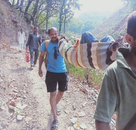 शिमला, 12 जून। सुदूरवर्ती क्षेत्रों को सड़क से जोड़ने का दावा करने वाली सरकार की हकीकत से रूबरू होना हो तो हिमाचल प्रदेश के टीकर गांव चले आइए। यह गांव आजादी के 75 साल बाद भी सड़क से वंचित है। देश अब 4जी से 5जी की ओर बढ़ चुका है, लेकिन ग्रामीण इलाकों के काम अभी भी कछुए की गति से चल रहे हैं। हमारे देश में अभी भी कई ऐसे गांव हैं जहां सड़क नहीं होने की वजह से बीमार लोगों को कंधे पर उठाकर पैदल ही अस्पताल पहुंचाना पड़ता है। ऐसी ही एक तस्वीर हिमाचल प्रदेश के उद्योग मंत्री हर्षवर्धन चौहान के विधानसभा क्षेत्र के टीकर गांव से सामने आई है। यहां शोभाराम नामक 65 वर्षीय एक बुजुर्ग को इलाज के लिए लोग कंधे पर उठाकर ले जाते हुए नजर आए। सड़क के अलावा भी इस गांव में कई मूलभूत सुविधाओं की कमी है जिसके चलते ग्रामीणों को काफी समस्याओं का सामना करना पड़ता है। मूलभूत सुविधाओं के लिए यहां के ग्रामीणों ने कई बार मांग भी उठाई है। लेकिन, किसी सरकार ने इसकी मांगें पूरी नहीं की। चुनाव के वक्त इन ग्रामीणों को तमाम राजनीतिक दलों से सिर्फ और सिर्फ आश्वासन मिलता है। टीकर गांव के रहने वाले नाथू राम बताते हैं कि प्रसव के दौरान यहां की महिलाओं को उठाकर लाना पड़ता है। इस दौरान कई महिलाओं ने रास्ते में ही बच्चों को जन्म दिया है। इलाज के लिए अस्पताल ले जाने के क्रम में कई लोग दम तोड़ चुके है।