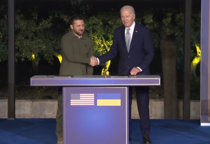 बारी (इटली), 14 जून । अमेरिका और यूक्रेन के राष्ट्रपति ने दक्षिण इटली में जी7 सम्मेलन के दौरान एक सुरक्षा समझौते पर हस्ताक्षर किए जो लंबे समय तक दोनों देशों के रणनीतिक संबंधों को रेखांकित करता है। अमेरिकी राष्ट्रपति जो बाइडेन और यूक्रेनी राष्ट्रपति वोलोडिमिर ज़ेलेंस्की ने द्विपक्षीय समझौते पर हस्ताक्षर किए। इससे पहले ब्रिटेन, फ्रांस और जर्मनी सहित 15 देश यूक्रेन के साथ इसी तरह का दीर्घकालिक सुरक्षा समझौता कर चुके हैं। बाइडेन के राष्ट्रीय सुरक्षा सलाहकार जेक सुलिवन ने बुधवार को कहा था कि समझौते में वाशिंगटन द्वारा यूक्रेन में अमेरिकी सैनिकों को तैनात करने की बाध्यता नहीं होगी, न ही इसमें विशेष हथियार प्रणाली की आपूर्ति की प्रतिबद्धता होगी। यह समझौता विशेष रूप से सैन्य उपकरणों, प्रशिक्षण और युद्धाभ्यास के संबंध में सभी संभावित स्तर पर दोनों देशों के बीच सहयोग को व्यापक रूप से रेखांकित करता है। साथ ही, यूक्रेन से अपने देश में न्याय, कानून प्रवर्तन और भ्रष्टाचार से लड़ने में सुधारों को लागू करने के लिए कहा गया है। इससे यूक्रेन को भविष्य में नाटो स्तर की सैन्य क्षमता विकसित करने में मदद मिलेगी। इस समझौते में यूक्रेन की रक्षा के लिए अमेरिकी सशस्त्र बलों को तैनात करने की कोई प्रतिबद्धता नहीं है। फ्रांसीसी राष्ट्रपति इमैनुएल मैक्रों के यूक्रेन में सैन्य प्रशिक्षकों को भेजने की अपील को बाइडेन ने खारिज कर दिया। वाशिंगटन का कहना है कि हमारा मकसद यूक्रेन को खुद अपनी रक्षा करने में सक्षम बनाना है। समझौते में विशेष हथियार प्रणालियों की आपूर्ति का कोई वादा नहीं है। अमेरिकी सरकार ने कीव के साथ इस समझौते से मास्को को एक संदेश देने की कोशिश की कि वह यूक्रेन के लिए निरंतर और दीर्घकालिक समर्थन के लिए प्रतिबद्ध है।