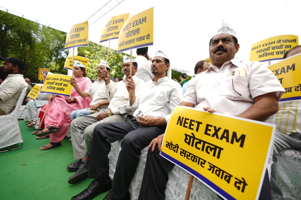 नई दिल्ली, 18 जून । नीट एग्जाम में पेपर लीक मामले को लेकर देशभर के अलग-अलग राज्यों में मंगलवार को प्रदर्शन किया जा रहा है। दिल्ली में भी आम आदमी पार्टी ने जंतर मंतर पर विरोध प्रदर्शन किया। नेशनल एलिजिबिलिटी कम एंट्रेंस टेस्ट के पेपर लीक का मुद्दा लगातार गर्माता जा रहा है। देशभर के छात्र इसके खिलाफ सड़कों पर उतर कर प्रदर्शन कर रहे हैं। सभी की मांग है कि दोषियों के खिलाफ कड़ी कार्रवाई होनी चाहिए। नीट एग्जाम को कैंसिल कर दोबारा परीक्षा कराने की मांग भी जोर पकड़ रही है। इसको लेकर एक याचिका सुप्रीम कोर्ट में भी दायर की गई है। इस बीच दिल्ली सहित पूरे देश में आम आदमी पार्टी के नेता और कार्यकर्ता प्रदर्शन कर रहे हैं। आम आदमी पार्टी के नेताओं ने कहा कि यह देश के भविष्य के खिलाफ बड़ा षड्यंत्र है। केंद्र सरकार की एनटीए ने देश के बच्चों के साथ धोखा किया है। बच्चों के सपने और भविष्य के साथ धोखा किया गया है। बिहार और गुजरात में पेपर लीक होने के मामले भी सामने आए, लेकिन केंद्र सरकार चुप्पी साधे रही। वह इस धांधली को छुपाने की कोशिश करती रही। आम आदमी पार्टी ने मांग की है कि इस मामले में केंद्र सरकार स्वतंत्र जांच कराए और यह सुप्रीम कोर्ट की देखरेख में हो। यह लाखों-करोड़ों बच्चों के भविष्य का सवाल है और आप इन बच्चों की आवाज़ को मजबूती से उठाएगी। आम आदमी पार्टी ने आरोप लगाते हुए कहा है कि बीजेपी की 10 साल की सरकार में कभी गुजरात, कभी हरियाणा, कभी यूपी में पेपर लीक होता है। इस बार देश के लाखों छात्र नीट घोटाले की वजह से निराश हैं। लेकिन इन छात्रों और उनके माता-पिता के दर्द को सुनने को सरकार तैयार नहीं है। आप ने कहा, देश के शिक्षा मंत्री नीट स्कैम को स्वीकार करने को तैयार नहीं हैं। ये लड़ाई छात्रों के भविष्य के साथ-साथ देश का भविष्य बचाने की भी लड़ाई है और इस लड़ाई को आम आदमी पार्टी छात्रों के साथ मिलकर सड़क से लेकर संसद तक में लड़ेगी।