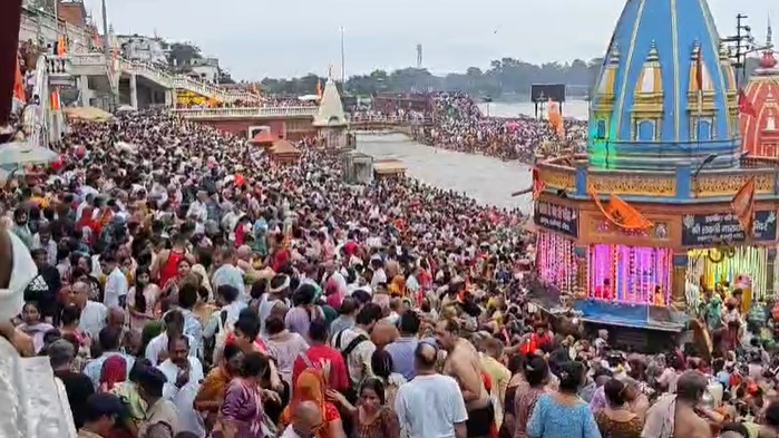 हरिद्वार, 2 सितंबर। हरिद्वार में सोमवती अमावस्या के अवसर पर लाखों श्रद्धालुओं ने गंगा में आस्था की डुबकी लगाई। इस दौरान चप्पे-चप्पे पर सुरक्षा के कड़े इंतजाम किए गए थे। मान्यताओं के मुताबिक, सोमवती अमावस्या के दिन दान करने से विशेष लाभ मिलता है। साथ ही पुण्य की भी प्राप्ति होती हैं। इसलिए, सोमवती अमावस्या पर स्नान करने का बहुत ही महत्व होता है। हर साल सोमवती अमावस्या के अवसर पर दिल्ली, पंजाब, हरियाणा, राजस्थान, मध्य प्रदेश, उत्तर प्रदेश समेत कई राज्यों से लाखों की तादाद में श्रद्धालु हरिद्वार आते हैं और हर की पौड़ी पर स्नान करते हैं। बिजनौर से हरिद्वार स्नान करने आए श्रद्धालु अभिषेक तोमर ने बताया कि आज के दिन का हिंदू धर्म में बहुत महत्व है। हम अपने पूर्वजों की शांति के लिए हर की पौड़ी पर स्नान करने आए हैं। यहां आकर स्नान करने से मन को बहुत शांति मिलती है। मुरैना से आए श्रद्धालु ने कहा कि गंगा मैया तो पापों से मुक्ति दिलाती हैं। यही वजह है कि सोमवती अमावस्या के शुभ दिन पर गंगा नदी में डुबके लगाने के लिए वह यहां आए हैं। पुरोहित उज्ज्वल पंडित ने बताया कि सोमवार को पड़ने वाली अमावस्या को सोमवती अमावस्या कहते हैं। इस पवित्र दिन महिलाएं सौभाग्यवती का वरदान प्राप्त करने और पति की लंबी आयु प्राप्त करने के लिए गंगा स्नान करती हैं। साथ ही वह पीपल के वृक्ष की पूजा करती हैं और कई वस्तुओं का दान करती हैं। बता दें कि हरिद्वार में सोमवती अमावस्या के मद्देनजर लाखों की संख्या में श्रद्धालु सुबह से ही हर की पौड़ी पर स्नान करने के लिए पहुंच रहे हैं। ऐसे में प्रशासन द्वारा भीड़ को नियंत्रित करने के लिए मेला क्षेत्र को 16 जोन और 39 सेक्टरों में बांटा गया है। साथ ही मेला क्षेत्र पर सीसीटीवी कैमरे से निगरानी रखी जा रही है।