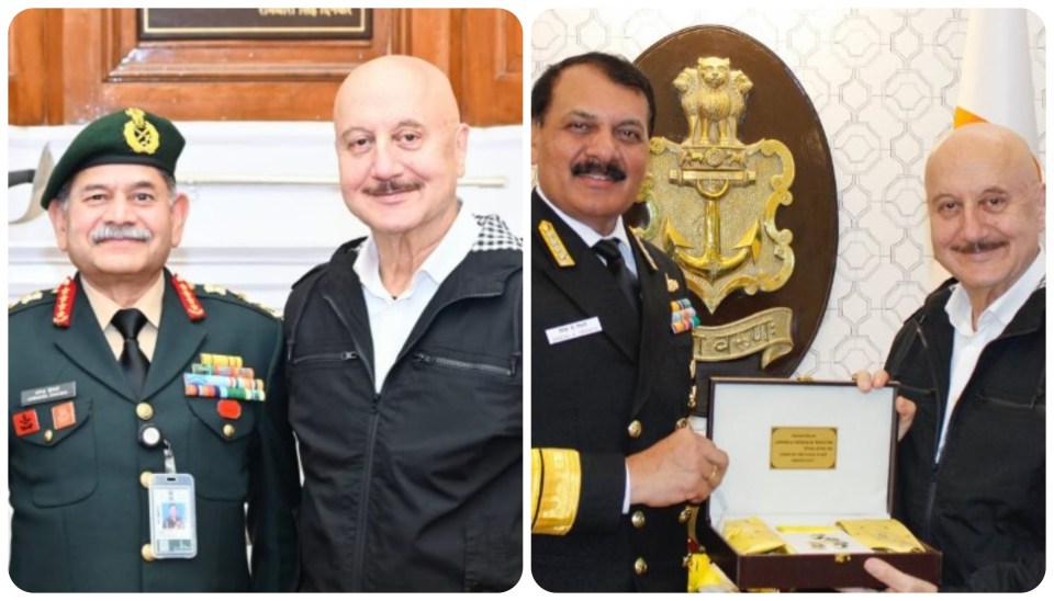 मुंबई, 27 दिसंबर। फिल्म अभिनेता अनुपम खेर देश-दुनिया के दिग्गजों से मुलाकात की तस्वीरें सोशल मीडिया पर शेयर करते रहते हैं। खेर ने गुरुवार को नौसेना, थलसेना प्रमुख से मुलाकात की तस्वीरों को शेयर कर उसे सबसे गौरवपूर्ण दिन में से एक बताया। अनुपम खेर सोशल मीडिया पर एक्टिव रहते हैं और अक्सर फैंस को नई जानकारियों से रूबरू कराते रहते हैं। भारतीय नौसेना प्रमुख दिनेश त्रिपाठी और भारतीय सेना प्रमुख उपेंद्र द्विवेदी से मुलाकात की तस्वीरों को इंस्टाग्राम पर शेयर कर अभिनेता ने कैप्शन में लिखा, “ सबसे गौरवपूर्ण दिन, मुझे भारतीय नौसेना प्रमुख एडमिरल दिनेश त्रिपाठी जी और भारतीय सेना प्रमुख जनरल उपेंद्र द्विवेदी से एक ही दिन उनके कार्यालय में मिलने का बड़ा अवसर मिला।“ दिन को “गौरवपूर्ण” बताते हुए अभिनेता ने आगे लिखा, “ यह निश्चित रूप से मेरे जीवन के सबसे महत्वपूर्ण और खास दिनों में से एक था।