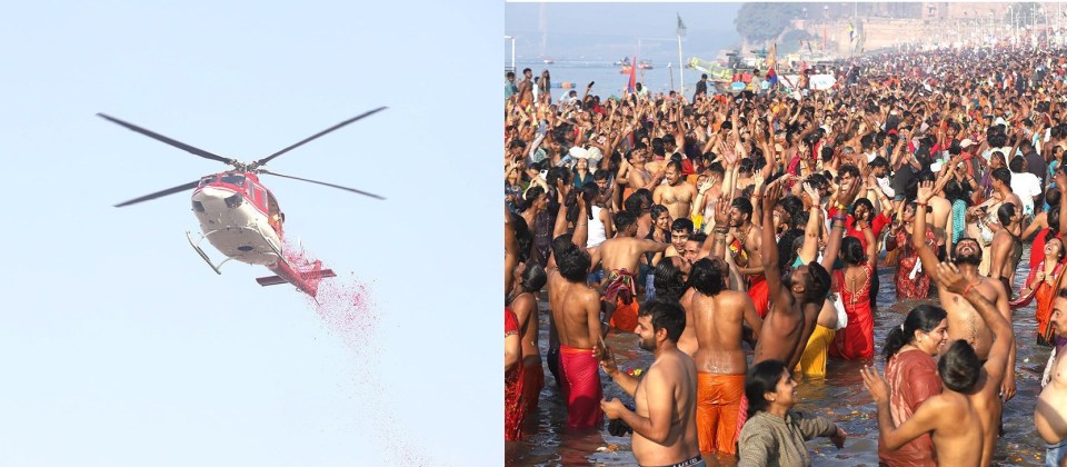 एक बार में सभी श्रद्धालुओं पर पुष्प नहीं पहुंच पाने के कारण हेलिकॉप्टर बार-बार संगम नोज पर पुष्प वर्षा करता नजर आया, ताकि हर एक श्रद्धालु पर फूलों की बारिश की जा सके। महाकुंभ मेला क्षेत्र में श्रद्धालुओं पर स्नान पर्वों के मौके पर पुष्प वर्षा की परंपरा रही है। इसी क्रम में माघ पूर्णिमा के पावन अवसर पर भी योगी सरकार ने परंपरा का निर्वहन करते हुए पुष्प वर्षा कर श्रद्धालुओं के लिए इस अवसर को यादगार बना दिया। सीएम योगी के निर्देश पर उद्यान विभाग ने पुष्प वर्षा की पुख्ता तैयारी की थी। इसके लिए गुलाब की पंखुड़ियों की खास तौर पर व्यवस्था की गई। अधिकारियों के अनुसार, प्रत्येक स्नान पर्व पर लगभग 20 क्विंटल गुलाब की पंखुड़ियों से बारिश की जा रही है। पुष्प वर्षा के लिए 20 क्विंटल गुलाब के फूलों का स्टॉक जमा किया जाता है, जबकि 5 क्विंटल फूल रिजर्व में भी रखे जाते हैं। परंपरा के अनुसार, योगी सरकार ने 13 जनवरी को पहले स्नान पर्व पौष पूर्णिमा और पहले अमृत स्नान पर्व मकर संक्रांति पर श्रद्धालुओं पर गुलाब की पंखुड़ियां बरसाई थीं, जबकि दूसरे अमृत स्नान मौनी अमावस्या पर सांकेतिक रूप से पुष्पवर्षा कराई गई। वहीं, तीसरे अमृत स्नान बसंत पंचमी और बुधवार को माघ पूर्णिमा पर भी इस परंपरा को जारी रखा गया।