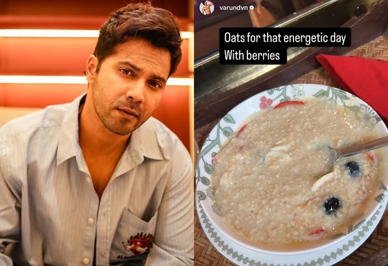 वरुण ने इंस्टाग्राम स्टोरीज पर एक तस्वीर साझा की, जिसमें ओट्स और बेरीज से भरा एक कटोरा नजर आ रहा है। इस डिश में पके हुए ओट्स के साथ ब्लूबेरी और स्ट्रॉबेरी मिली हुई हैं। एक चम्मच भी आंशिक रूप से ओटमील में डूबा हुआ दिख रहा है।