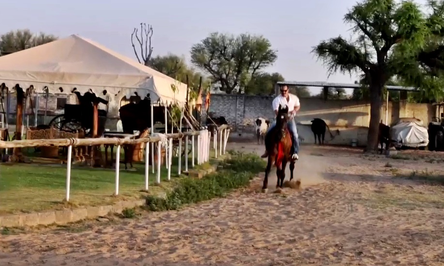 एक वीडियो में अभिनेता घुड़सवारी का लुत्फ उठाते नजर आ रहे हैं। कुछ चक्कर लगाने के बाद, वह घोड़े से उतरते हैं और प्यार से घोड़े को थपथपाते हैं। एक सूत्र ने आईएएनएस को बताया कि सैफ इस समय जयपुर के मंडावा में एक फिल्म की शूटिंग कर रहे हैं और अपने खाली समय में उन्होंने घुड़सवारी का मजा लिया।