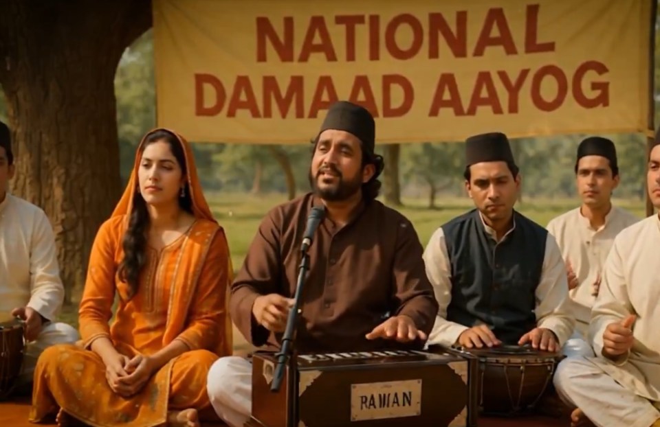 इस वीडियो में NDA को व्यंग्य करते हुए “नेशनल दामाद आयोग” (National Damad Aayog) कहा गया है।