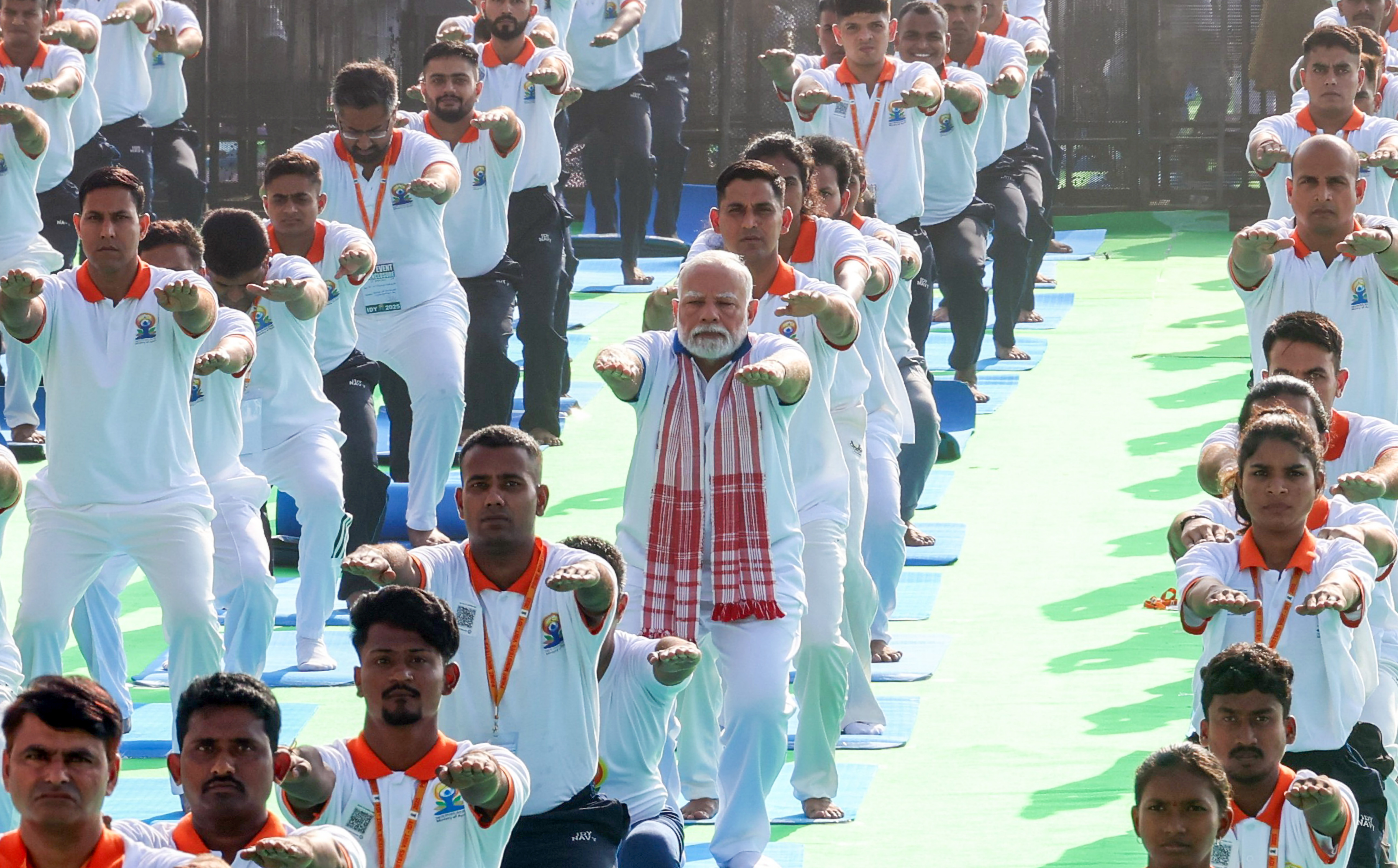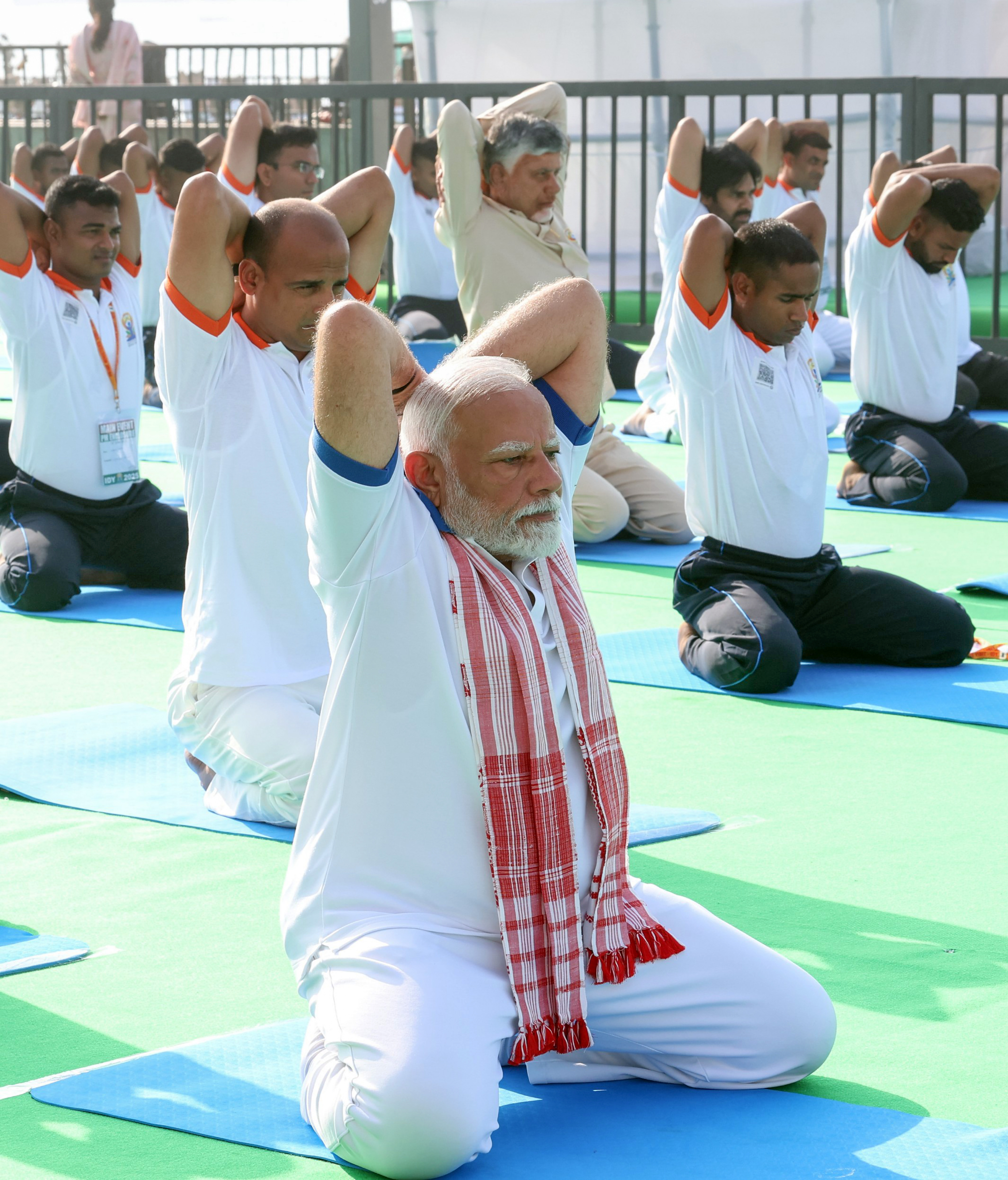 Visakhapatnam Yoga Event 2025, 21 जून। प्रधानमंत्री नरेंद्र मोदी ने शनिवार को आंध्र प्रदेश के विशाखापट्टनम में 11वें अंतर्राष्ट्रीय योग दिवस के अवसर पर सामूहिक योगाभ्यास में हिस्सा लिया। इस कार्यक्रम में बड़ी संख्या में लोग शामिल हुए। प्रधानमंत्री ने योग के महत्व को रेखांकित करते हुए इसे जीवनशैली का अभिन्न हिस्सा बताया।