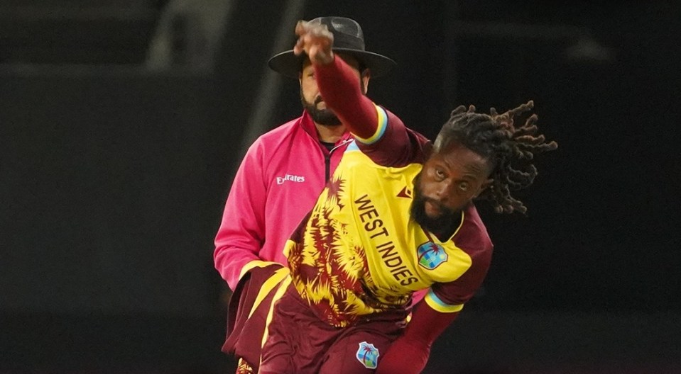वेस्टइंडीज की तरफ से शमर स्प्रिंगर ने 20 रन देकर 4 विकेट हासिल किए। स्प्रिंगर ने 19वें ओवर की शुरुआती तीन गेंदों पर गुरबाज, राशिद खान और शाहिदुल्ला का विकेट लेकर हैट्रिक पूरी की। उनके अलावा, मैथ्यू फोर्ड, खैरी पियरे और रेमन सिमंड्स ने 1-1 विकेट हासिल किया।