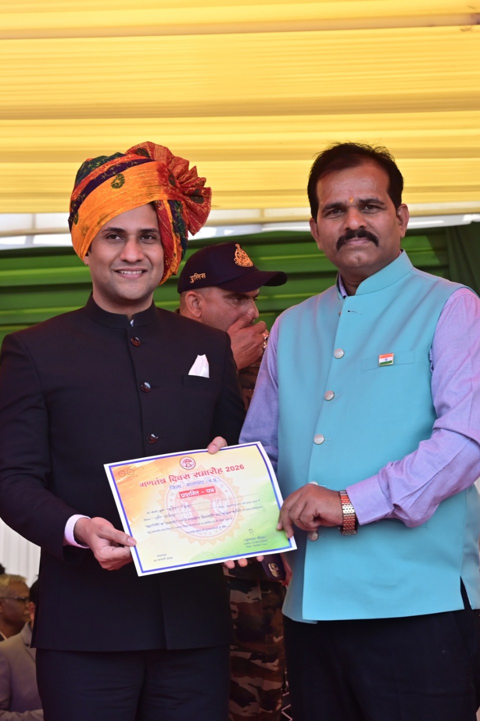 ज्ञात हो कि जिले में किसी भी प्रकार के आयोजन हो गरीबों की मदद शिक्षा विवाह आदि में जरूरत मंद की तन मन और धन से निस्वार्थ भाव से सेवा करने के साथ साथ अनेक अखबारों में विगत 20 वर्षों से शासन प्रशासन की योजनाओं को जन जन तक पहुंचाने ओर समाज के अंतिम छोर में निवासरत आदमी की आवश्यकता को शासन के सामने लाने हेतु संघर्षरत ब्रजेश मिश्रा के कार्यों को देखते जिला के कलेक्टर महोदय के साथ पुलिस अधीक्षक ने 26 जनवरी गणतंत्र दिवस के अवसर पर स्थानीय स्टेडियम ग्राउंड में प्रमाणपत्र देकर सम्मानित किया है l