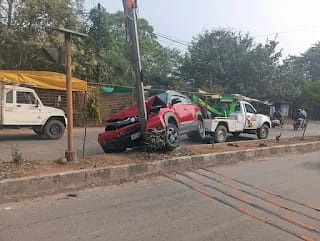 जबलपुर। गुरुवार सुबह एक तेज रफ्तार कार अनियंत्रित होकर बिजली के खंभे से जा टकराई। हादसा गोरा बाजार थाना क्षेत्र के बिलहरी-तिलहरी मार्ग पर सुबह करीब 5 बजे हुआ। कार जबलपुर से बरेला की ओर जा रही थी और उसकी रफ्तार इतनी अधिक थी कि टक्कर के बाद बिजली का खंभा टूटकर गिर गया, जिससे इलाके में कुछ देर के लिए अंधेरा फैल गया।