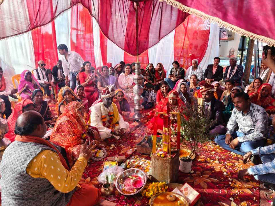 विवाह समारोह के दौरान मंदिर परिसर शहनाइयों की मधुर धुनों, वैदिक मंत्रोच्चार और मंगल गीतों से गूंज उठा। दोनों नवविवाहित जोड़ों को समाज के वरिष्ठजनों एवं उपस्थित अतिथियों ने आशीर्वाद प्रदान किया। इस अवसर पर यह भी देखने को मिला कि समाज के लोगों ने सामूहिक रूप से वर-वधुओं को गृहस्थ जीवन की शुरुआत के लिए आवश्यक उपहार और सामग्री भेंट की।
